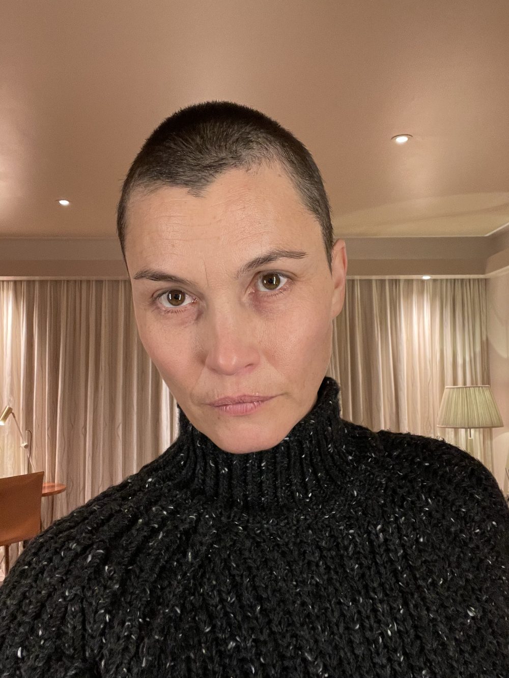 – For arbeidets skyld gav det meg jo en slags inngang til karakteren min, Anne, og en dypere forståelse for hva en av de jævlige konsekvensene av en kreftsykdom kan være. På privaten var barna og mannen min litt sjokka, men jeg tenker det er sunt, særlig for sønnen min og hans små kompiser, å lære at man kan være feminin også med kort hår.